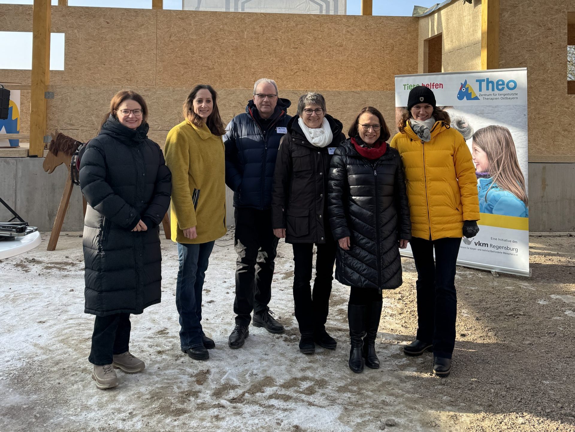 Geschäftsleiterin Claudia Donhauser zusammen mit Vertretern von Theo Baustellenteam Gebr. Donhauser vor Ort Am Theo – Zentrum f...