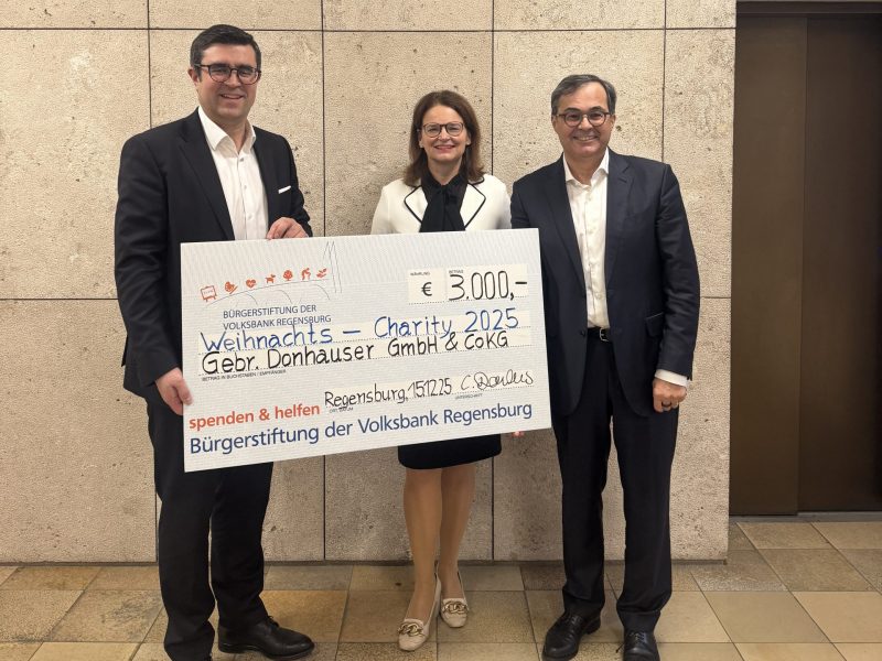 Anfang dieser Woche überreichte unsere Geschäftsführerin Claudia Donhauser eine Weihnachtsspende an die Bürgerstiftung der Volksbank Regensburg in Höhe von 3.000 Euro