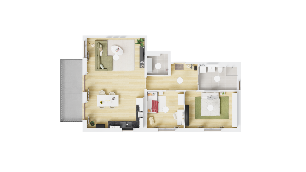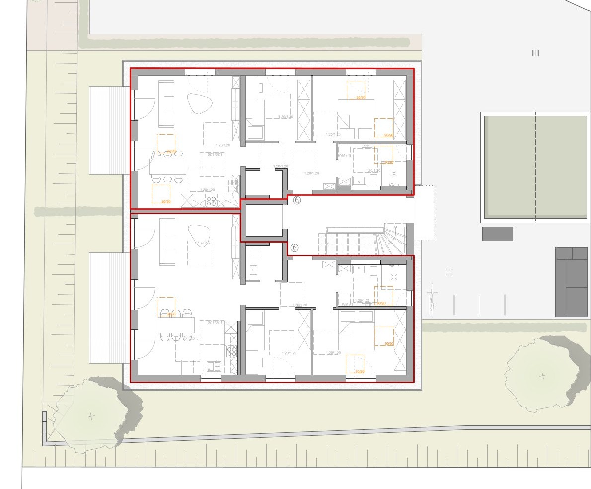 Das Umfeld bietet eine ausgewogene Mischung aus Wohngebieten und grünen Erholungsflächen. Spazier- und Radwege liegen direkt vor der Haustür, ebenso wie Kindergarten, Grundschule, Ärzte und Einkaufsmöglichkeiten.